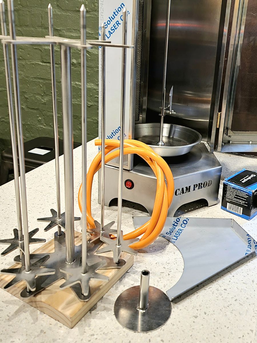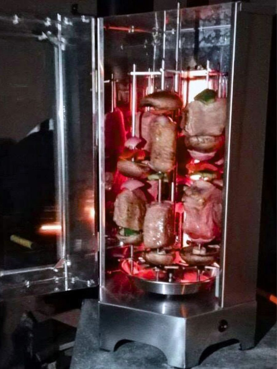 The Vertical Spit 3-in-1: Espetada |shawarmas | dishes combines versatility, and ease of use. Designed for both home and professional kitchens, this vertical spit delivers perfectly cooked meat every time.